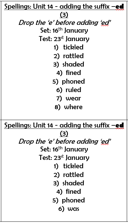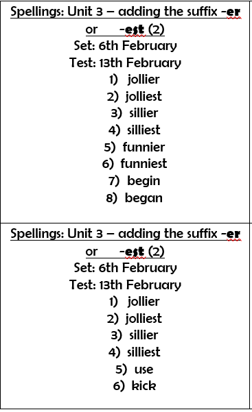 - Practising spellings for 5 minutes daily. New spellings are given out on a Friday and the children will be tested on these the following Friday.