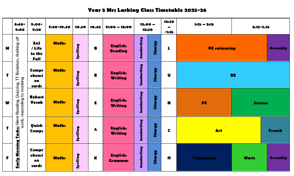 Below is the timetable for Year Five